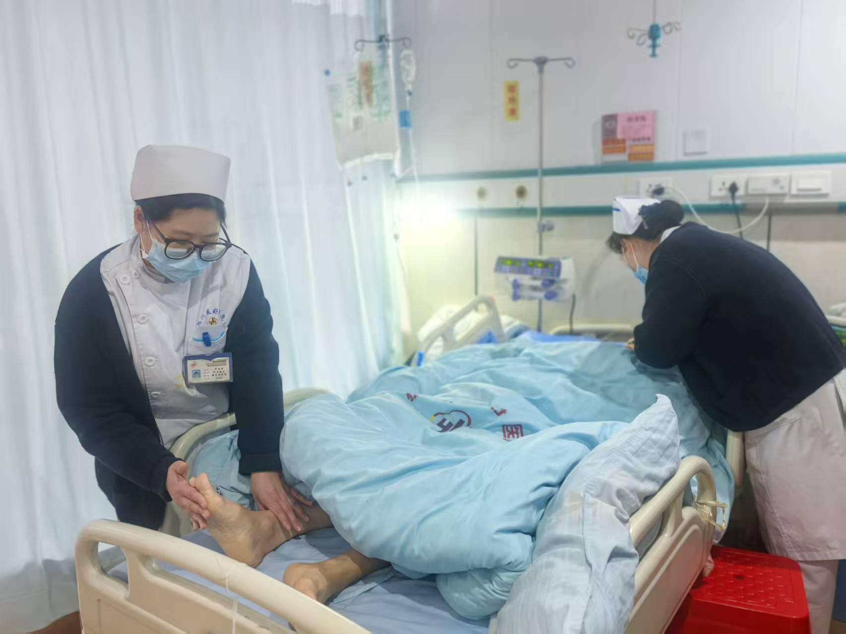 近一周的时间,医疗团队坚持每日多次查房,周末也不例外,以动态调整治疗方案;护理组同步落实精细化护理措施,严格做好气道管理,按需执行吸痰操作,同时强化基础护理:通过规范口腔护理保持口腔清洁,开展踝部被动运动预防深静脉血栓,采用气垫床规避压力性损伤风险。